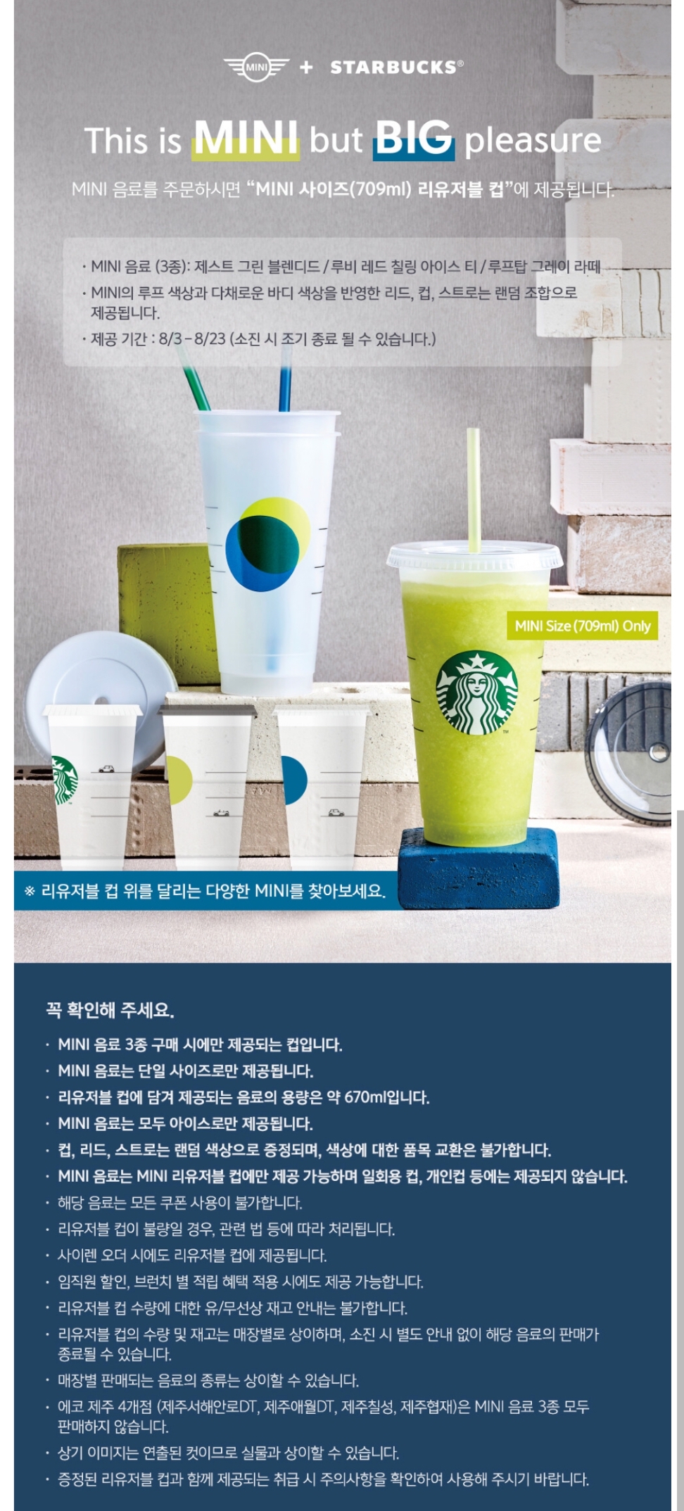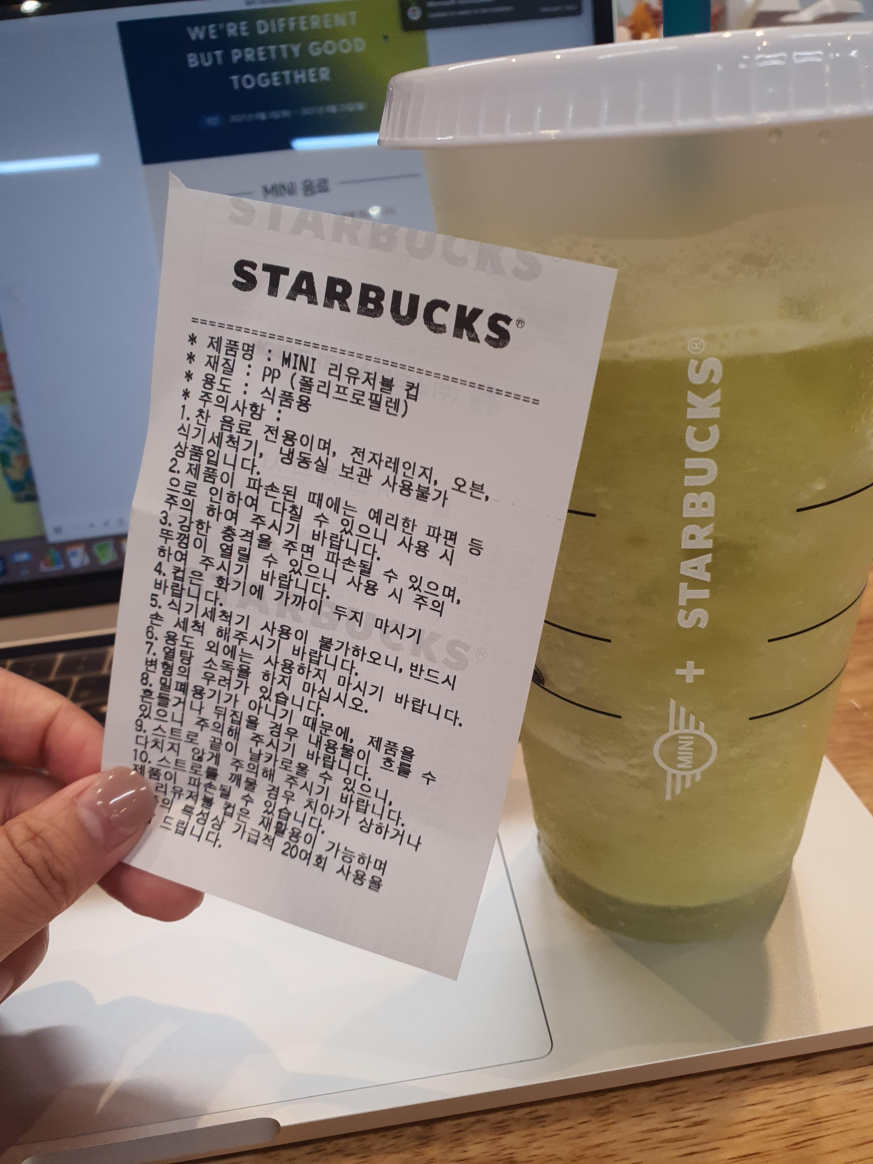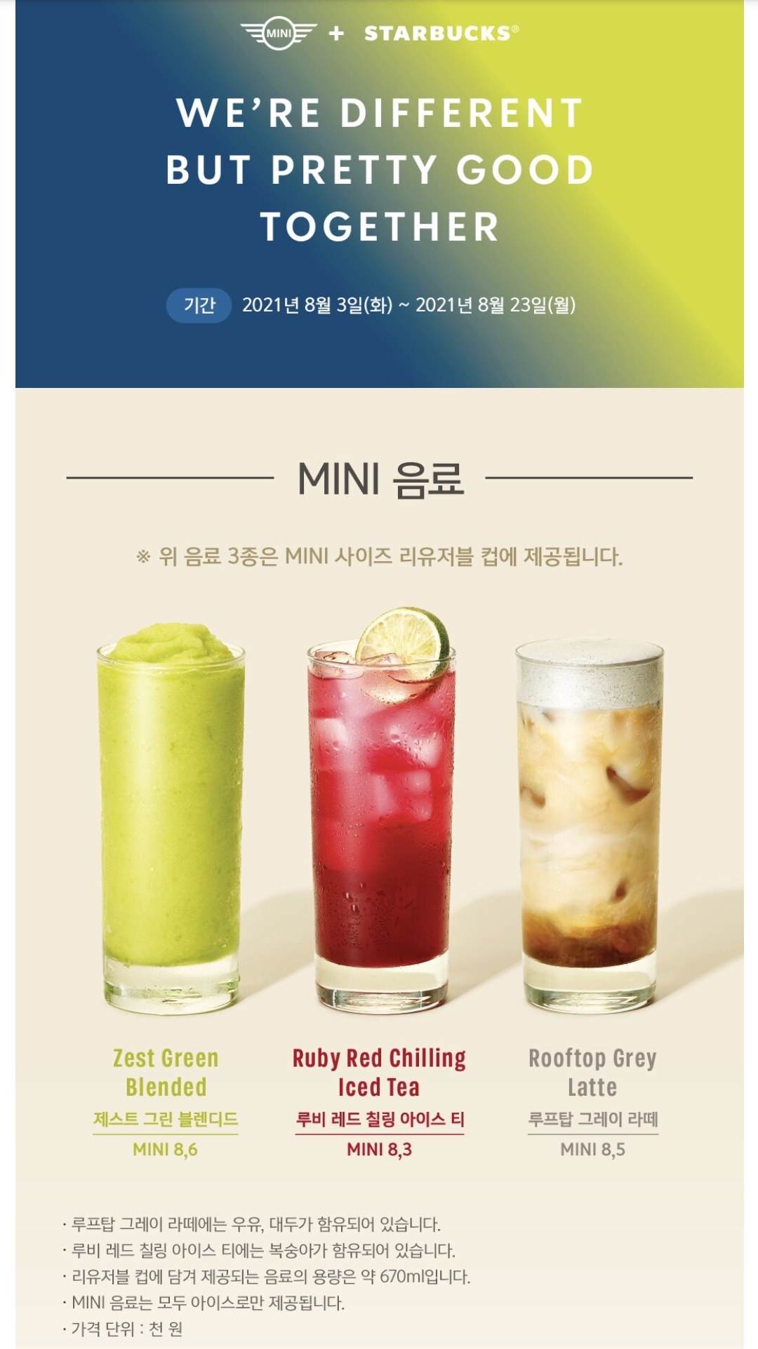 스타벅스에서 MINI랑 콜라보한 굿즈랑 신제품 음료가 나왔습니다.