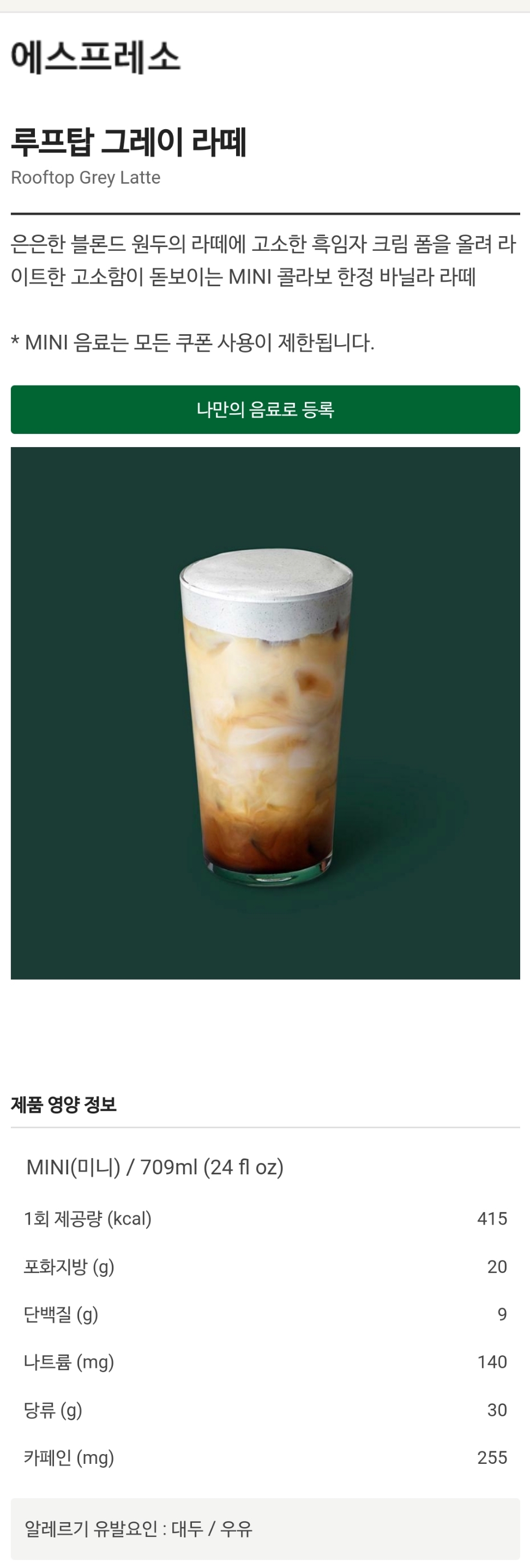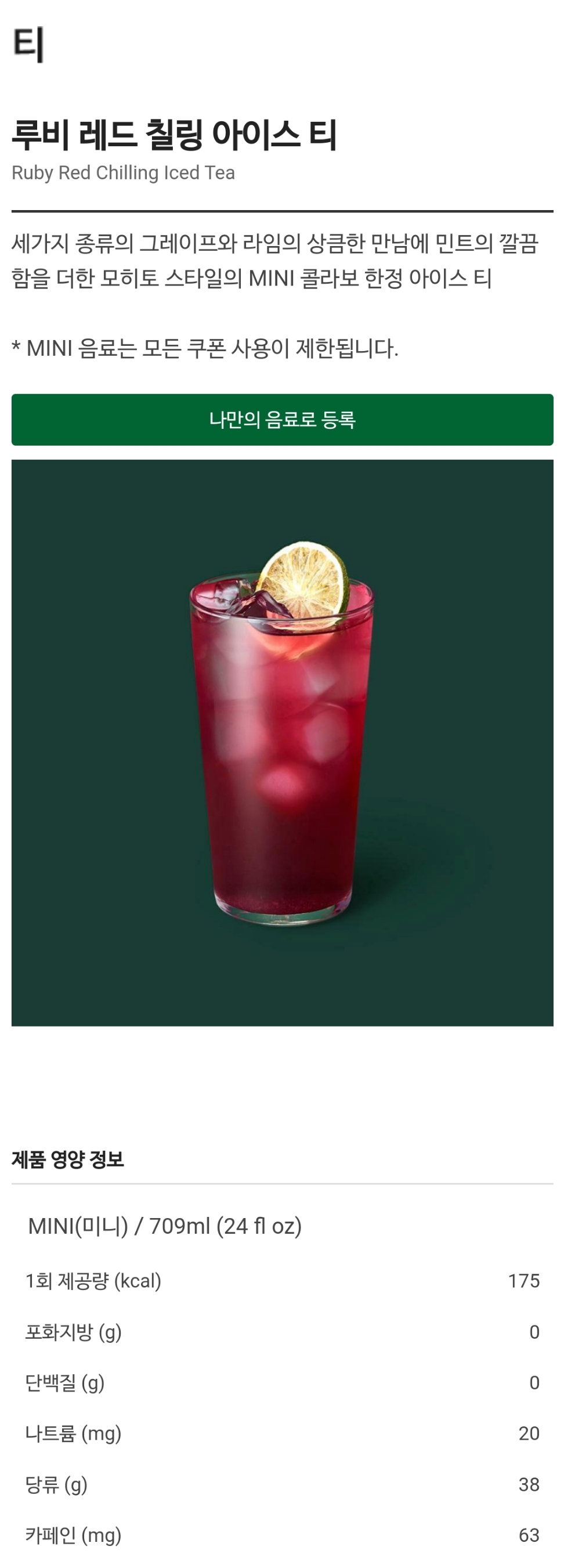 스타벅스 음료 사이즈가 Tall(354ml) Grande(473ml) VENTI(hot 591ml ice 709ml) 니까, 아이스 벤티 사이즈군요!!