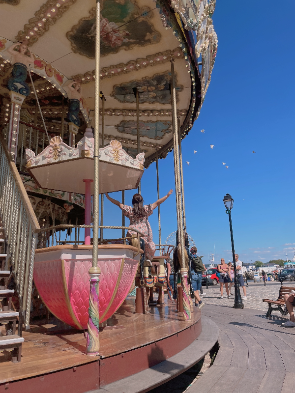날씨도 좋고, 항구에 있는 회전목마가 예뻐서 친구랑 번갈아가면서 한번씩 탔어요.