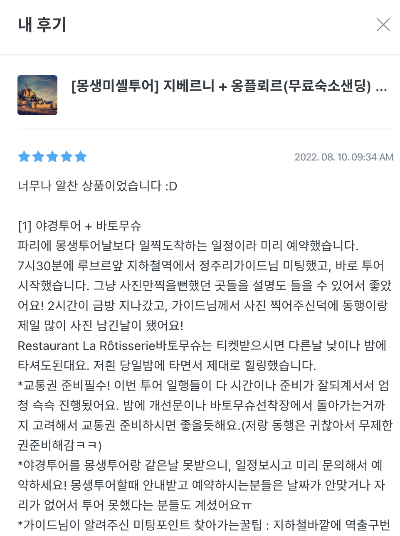 먼저 제가 야경투어 및 근교투어 후 남겼던 후기 캡쳐본입니다.