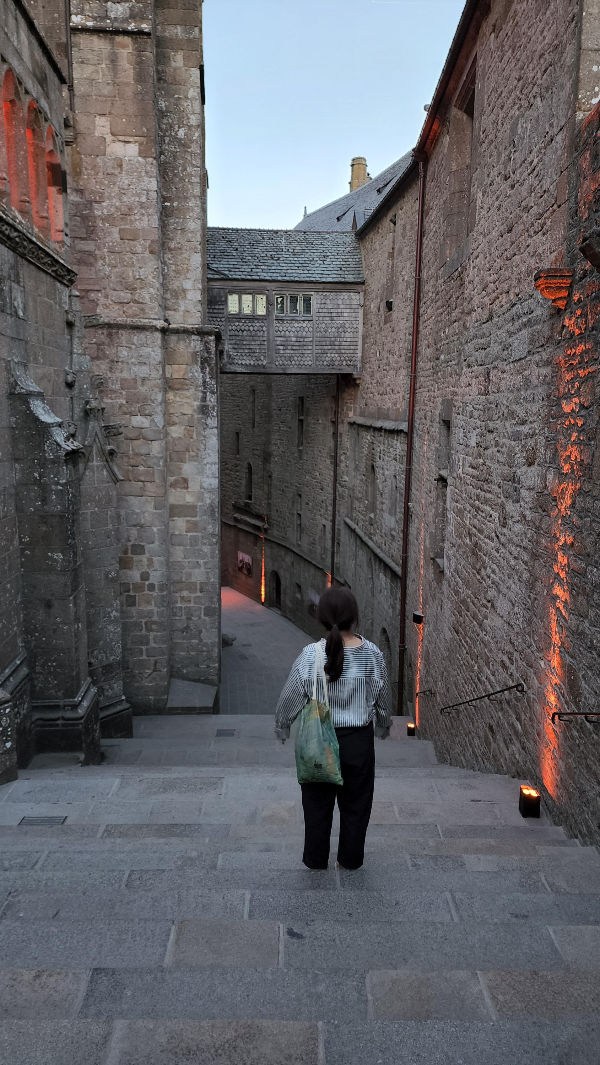 옷 환복을 안하시더라도 해가 지는 몽생미셸은 좀 추워서 얇은 긴팔이나 스카프 챙기시길 추천드립니다.